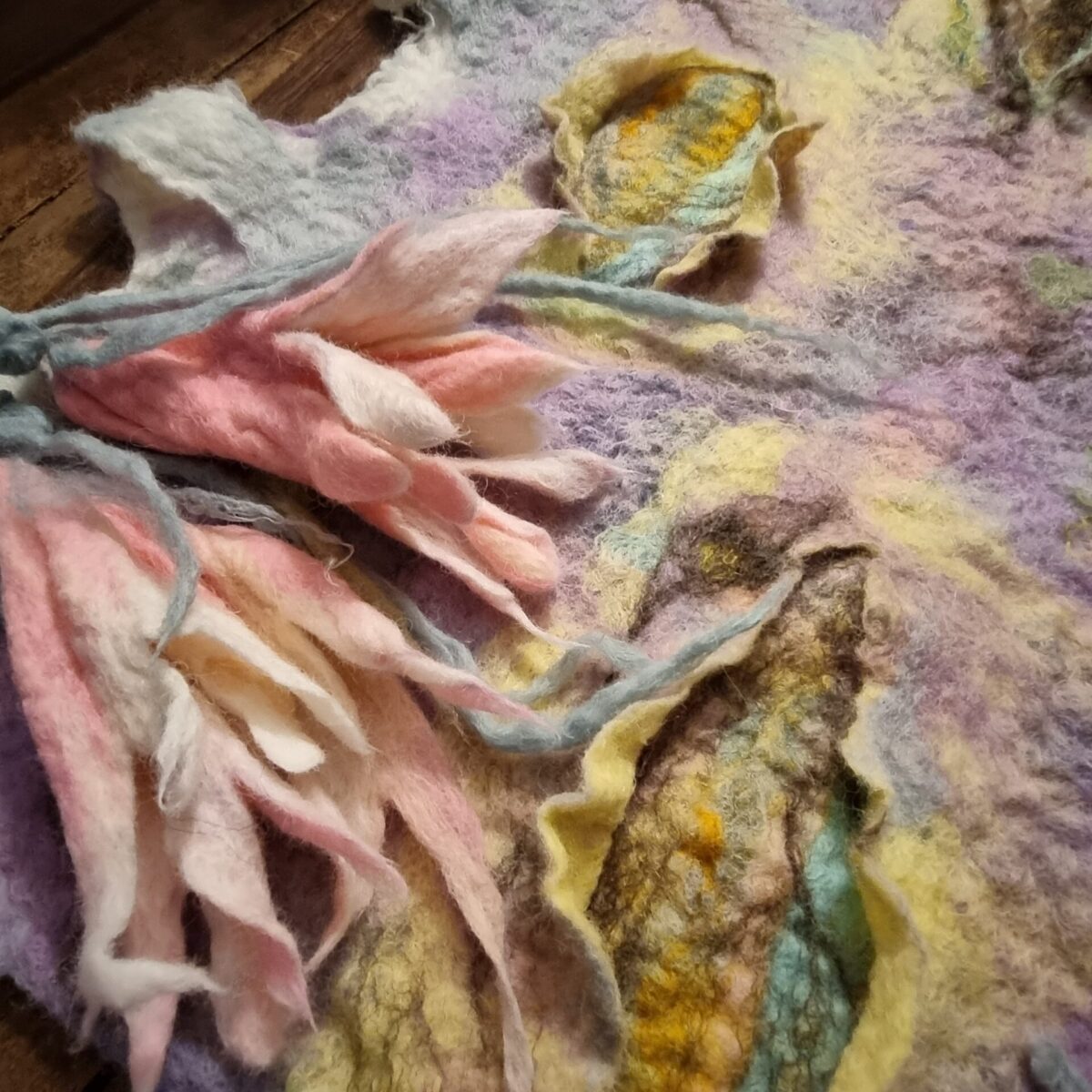 Amalgamar la imperfección de lo creado con la belleza de la naturaleza,así como mi historicidad de vivencias transmutada en texturas,colores,movimientos y flores sobre una base que espera la sorpresa de lo que surgirá,va generando el diálogo preciso y silencioso de esa parte instintiva e intuitiva que necesita ser expresada.